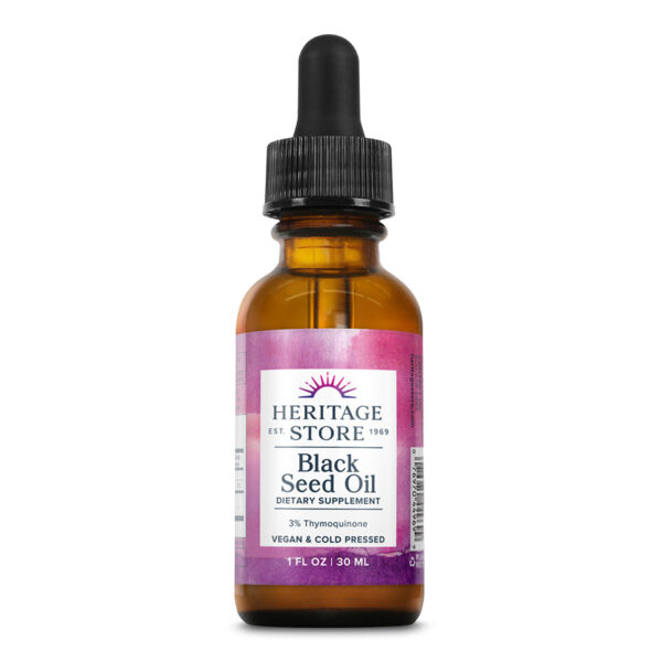 Trusted and used in traditional health practices for thousands of years, black seed oil is still used today to help support many health and beauty benefits. Standardized to 3% thymoquinone – a volatile antioxidant found in the nutritious oil – Heritage Store Black Seed Oil may provide nutritive support for a healthy immune system and normal heart function. Meanwhile, naturally occurring amino acids and fatty acids may help support cardiovascular and joint health as well as healthy digestion. While it may help you feel your best, black seed oil may also help you look your best! With a rich nutrient profile, you can add Heritage Store Black Seed Oilr Black Seed Oil to water, raw honey, vegetable glycerin, or warm tea to help support hydrated hair, softer skin, and an overall more vibrant, healthy appearance.*