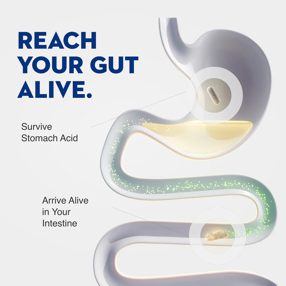 - Proprietary Enteric Shield® VegCaps protect fragile cultures during digestion—helping them survive harsh stomach acid so they arrive alive in the intestines for optimal delivery.*