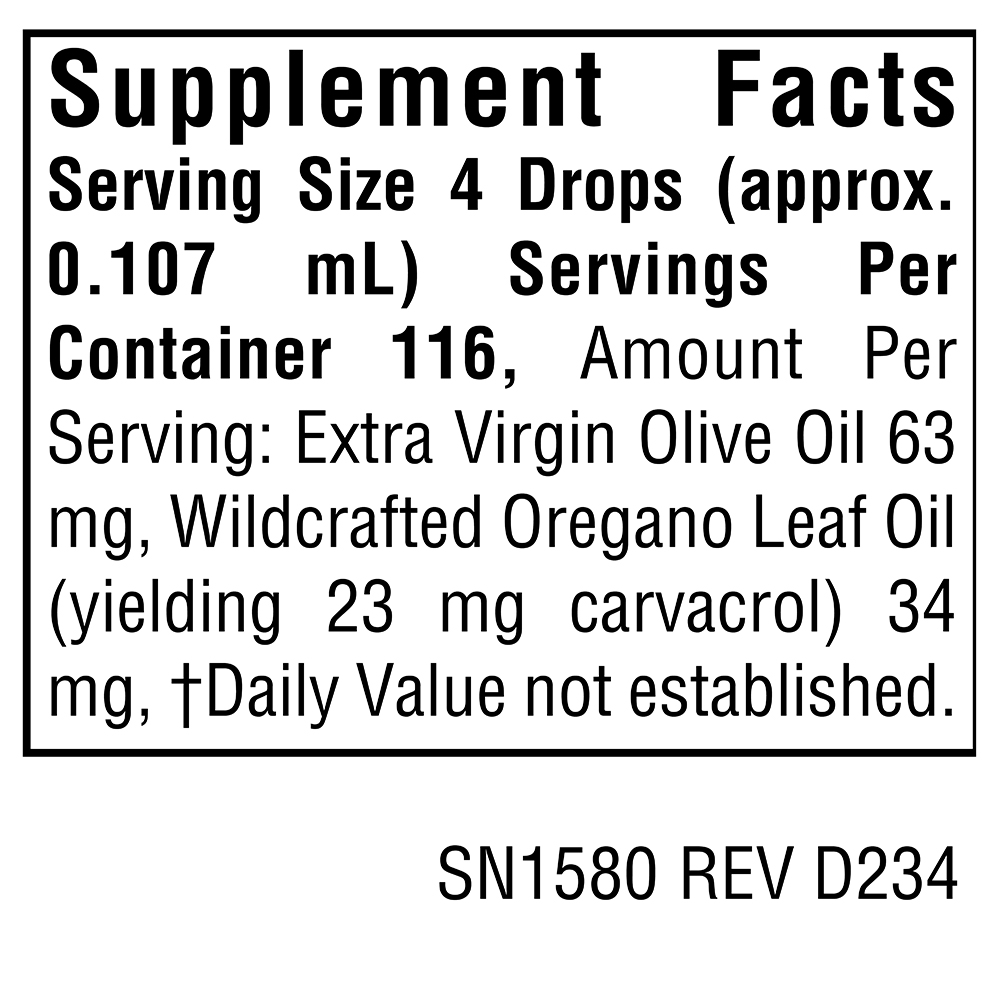 Key ingredients: Wildcrafted Oregano Oil (Origanum vulgare leaf) Yielding 31.5 mg Carvacrol